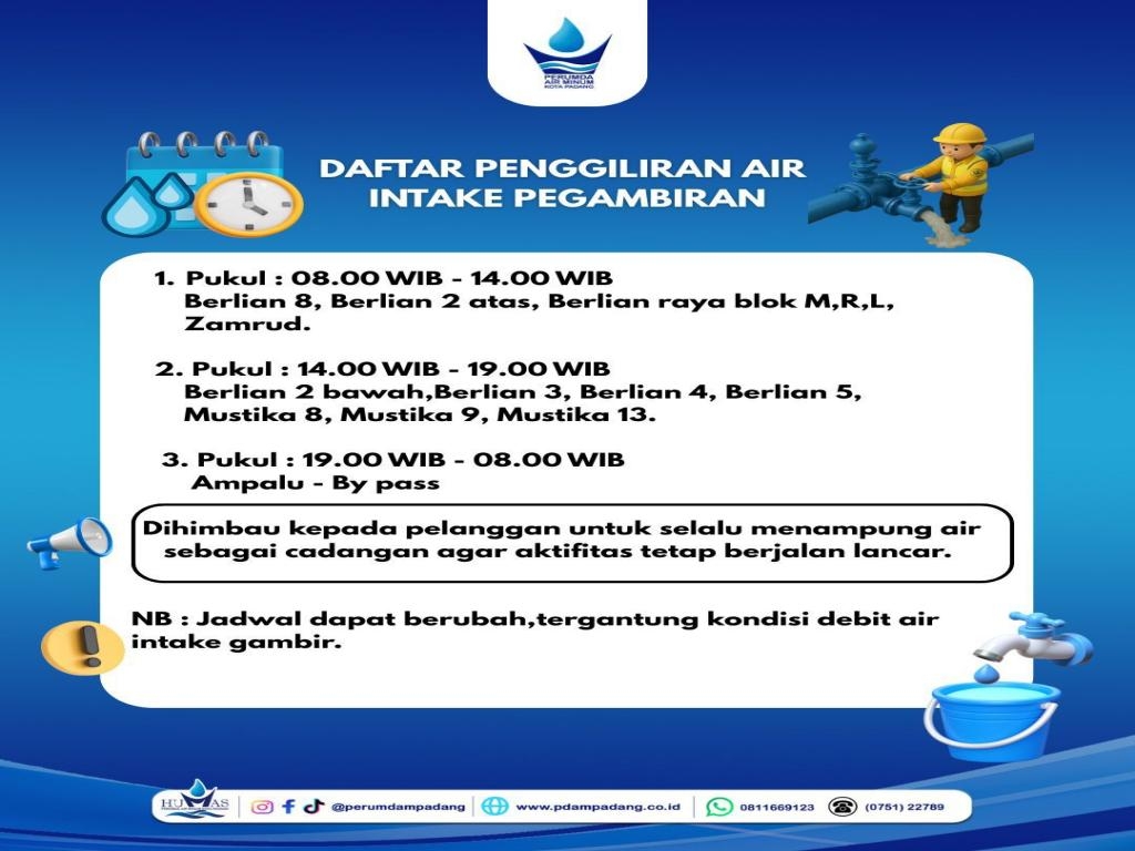 Dihimbau kepada pelanggan untuk selalu menampung air sebagai cadangan agar aktifitas tetap berjalan lancar.