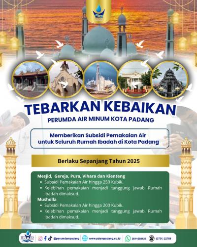 TEBARKAN KEBAIKAN PERUMDA AIR MINUM KOTA PADANG UNTUK RUMAH IBADAH