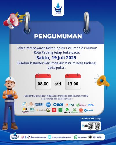 PENGUMUMAN LOKET PEMBAYARAN REKENING AIR, KAMI TETAP BUKA, SABTU 19 JULI 2025